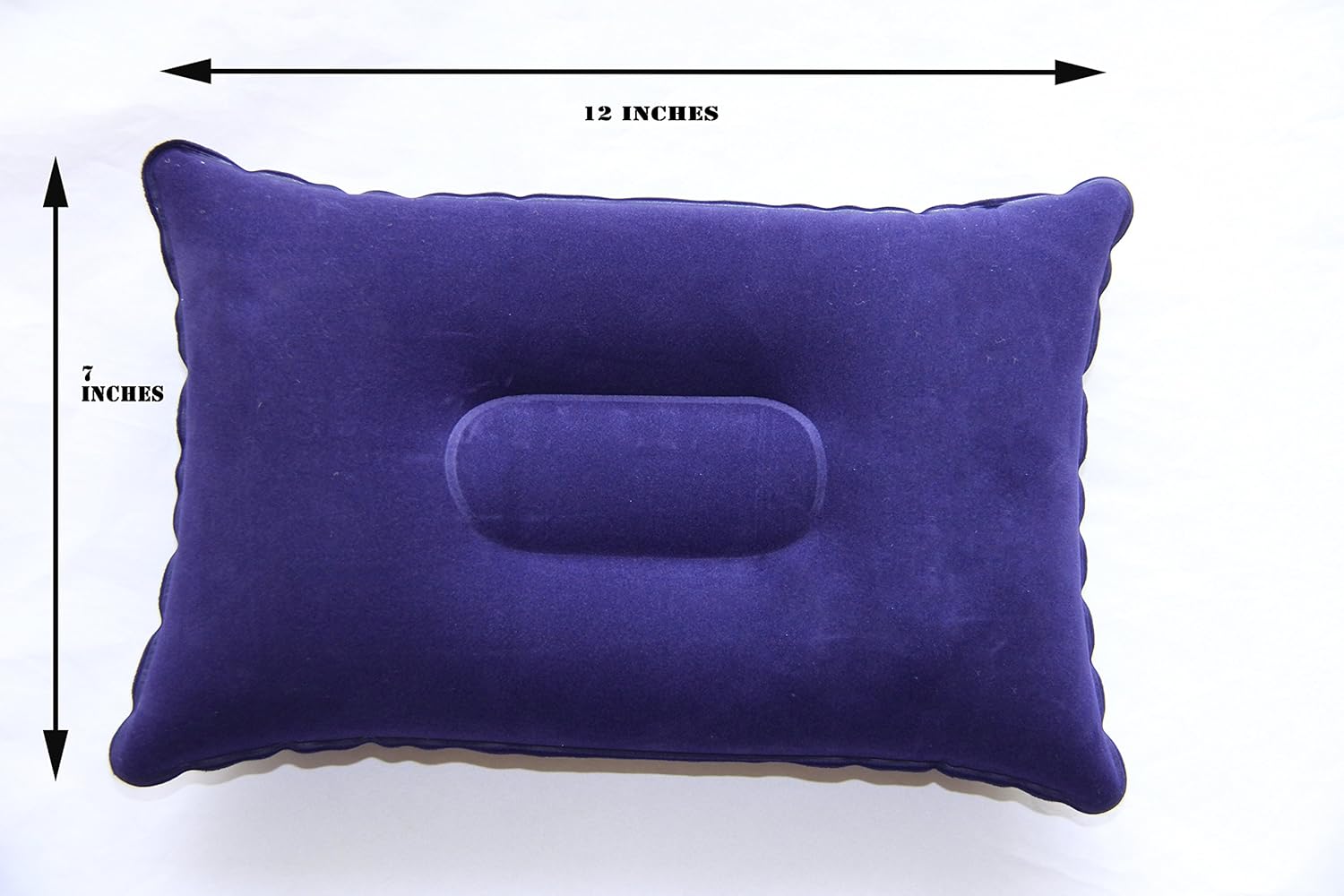Super-Comfy 2 Pack Small Inflatable Travel Pillow Lumbar Support Flocked Velvet-Touch Navy Blue quantity